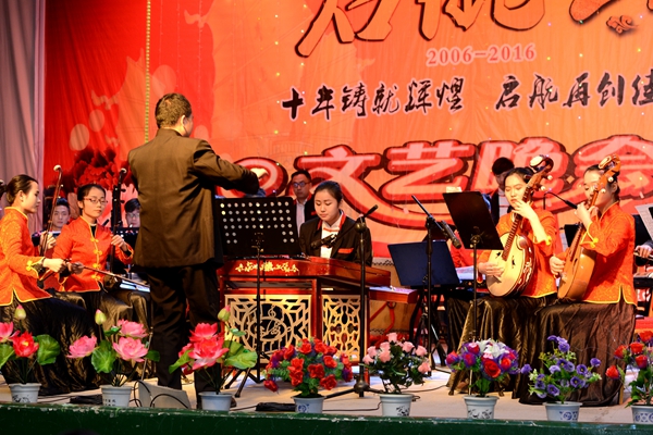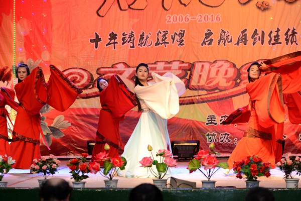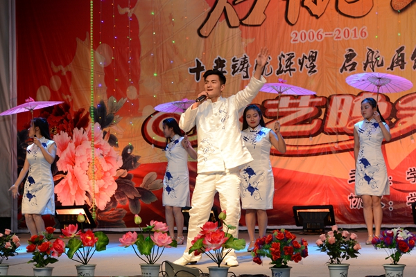 當晚的大學生活動中心四處洋溢著歡樂的節(jié)日氣氛。晚會在民樂《春節(jié)序曲》的精彩表演中拉開序幕。整場晚會形式多樣,精彩紛呈。歌舞、相聲、小品、魔術(shù)、朗誦等18個形式多樣、精彩紛呈的節(jié)目贏得了臺下觀眾們的陣陣喝彩。歌伴舞《秦嶺最美是商洛》,用優(yōu)美的歌聲和優(yōu)雅的舞蹈向大家展現(xiàn)了商洛美麗的地域風情;漢服社的同學邁著輕快靈動、曼妙翩躚的舞步,用一支舞蹈《相和歌》讓大家體會到了中華民族傳統(tǒng)文化的獨特魅力;魔術(shù)表演《閃耀奇跡》讓大家讓大家感受到了魔術(shù)的千變?nèi)f化,贏得了觀眾的陣陣掌聲;被同學們冠以“樓姨”昵稱的宿舍管理員用一場《大時代》的舞蹈將晚會氣氛的推向高潮;文傳學院教師張曉倩創(chuàng)作的詩歌《十年》以詩朗誦的形式描繪了出我校升本十年來的發(fā)展,讓師生們回顧了商洛學院十年來的變化與發(fā)展;晚會在一曲男女二重唱《走向復興》中完美落幕。