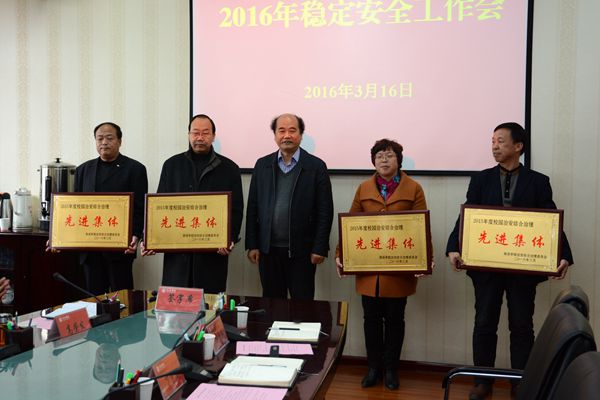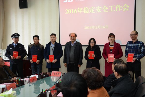 黨委書記、校長劉建林在講話中結合全省高校穩定安全工作會議精神,對我校2016年穩定安全工作提出了4點具體要求:一是認清形勢,正視問題,切實增強做好學校安全工作的責任感和使命感。要進一步強化政治意識、大局意識、憂患意識和責任意識,充分認識加強學校穩定安全工作的重要性和緊迫性,切實提高做好學校穩定安全工作的使命感和責任感,倍加珍惜學校事業發展的機遇,倍加珍惜浸透了師生的心血、來之不易的學校發展的大好局面,全力維護學校穩定安全,為學校持續發展創造良好的環境。二是要提高認識,健全制度,形成安全穩定工作的強大合力。要牢固樹立“穩定壓倒一切、警鐘長鳴、全員抓安全穩定”三種意識,繼續實施穩定安全工作責任制和責任追究制,齊抓共管,形成合力。三是要穩定隊伍,提高素質,不斷適應新形勢下安全穩定工作的管理要求。要建設一支適應新時期、新形勢要求的穩定安全工作專兼職隊伍,促進穩定安全管理水平的提升。四是要明確任務,從嚴從實,努力做好穩定安全重點工作。要強化隱患排查,消除各類安全隱患;進一步完善安全穩定工作運行機制;強化安全教育,提升安全防范能力,進一步強化人防物防技防建設;加強意識形態管理,凈化校園網絡環境;加快推進“平安校園”建設。