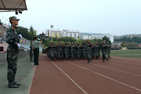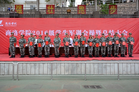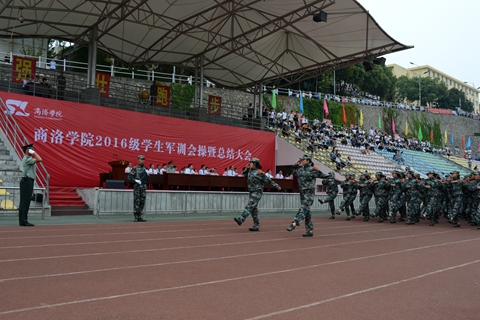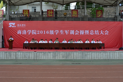 9月18日下午,我校隆重舉辦2016級學生軍訓會操暨總結大會,檢閱2016級學生軍訓成果,對軍訓中涌現出的先進集體和個人進行表彰。校領導劉建林、范新會、王思懷、魏書堂、彭虎軍、劉寶盈,商洛軍分區參謀長李水龍大校,中國人民解放軍第47集團軍某部機步營營長、我校2016級學生軍訓團團長馬防少校出席大會并為先進集體和個人頒獎。各二級學院黨政負責人,各職能部門負責人,全體2016級學生及輔導員參加了大會。大會由黨委副書記、副校長范新會主持。