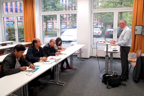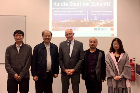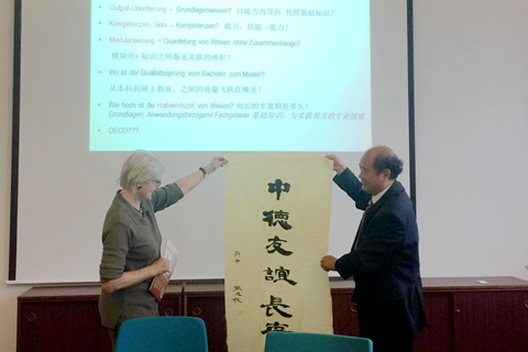 在德國柏林應(yīng)用科技大學,劉建林一行先后前往兩個分校區(qū),分別與Hoffjann教授和Kammasch教授在應(yīng)用型人才培養(yǎng)過程中的教學質(zhì)量管理的模式、管理質(zhì)量管理的模式、工程教育及其教學法、應(yīng)用型教師的培養(yǎng)等方面開展了深入交流和探討,了解了《博洛尼亞宣言》后歐洲高等教育體系的改革和建設(shè)成果。