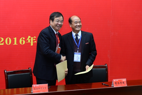 會上,陜西師范大學與我校簽訂戰略合作協議,西北大學與我校簽訂對口支援合作協議,商洛六縣一區政府、商丹工業園區管委會與我校簽訂校地合作聯盟協議。