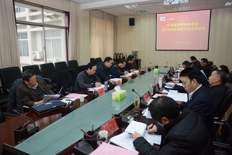 根據(jù)《中共陜西省委高教工委關(guān)于認(rèn)真開(kāi)好2016年度高校領(lǐng)導(dǎo)班子民主生活會(huì)的通知》有關(guān)要求,按照《商洛學(xué)院黨委班子2016年度民主生活會(huì)方案》,1月5日下午,我校召開(kāi)了以“學(xué)習(xí)貫徹黨的十八屆六中全會(huì)精神”為主題的黨委班子2016年民主生活會(huì)。省委第九巡視組副組長(zhǎng)周瓏,巡視專員韓升良、張曉黎,省委高教工委“兩學(xué)一做”學(xué)習(xí)教育第三督導(dǎo)組組長(zhǎng)賈崇吉出席會(huì)議。會(huì)議由校黨委副書(shū)記、副校長(zhǎng)范新會(huì)主持。全體黨委委員參加會(huì)議,黨政辦公室負(fù)責(zé)人列席會(huì)議。