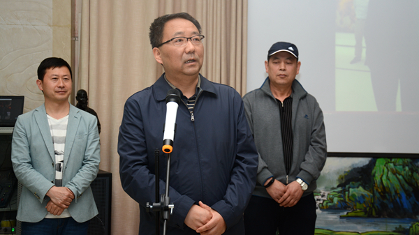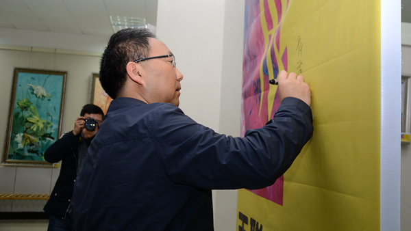 龍治剛在畫(huà)展開(kāi)幕式上作了講話,要求藝術(shù)學(xué)院師生進(jìn)一步凝練秦嶺畫(huà)派創(chuàng)作方向,不斷創(chuàng)作藝術(shù)精品,擴(kuò)大秦嶺畫(huà)派和教師的社會(huì)影響。在藝術(shù)學(xué)院負(fù)責(zé)人和王聰指導(dǎo)教師的陪同下,他興致勃勃地參觀了王聰?shù)淖髌罚私饬送趼數(shù)膶W(xué)習(xí)創(chuàng)作情況,針對(duì)具體作品進(jìn)行了點(diǎn)評(píng),并親筆簽名留念。