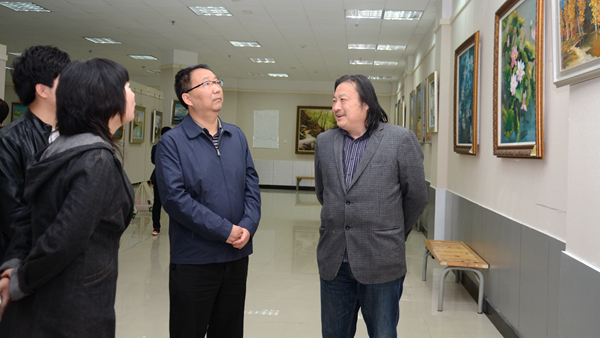 4月17日,藝術(shù)學(xué)院美術(shù)專業(yè)學(xué)生王聰“我心我塑” 畢業(yè)油畫(huà)展在藝術(shù)展廳拉開(kāi)帷幕,校黨委書(shū)記龍治剛參觀了畫(huà)展。龍治剛在參觀中對(duì)王聰?shù)膭?chuàng)作水平給予了肯定,并勉勵(lì)他抓住重點(diǎn),大膽突破,創(chuàng)作出更好的作品。