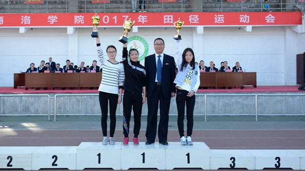 在熱烈的掌聲中,校長范新會、副校長魏書堂、黨委副書記彭虎軍、副校長劉寶盈分別為體育道德風(fēng)尚獎、團體總分前三名、男子總分前三名和女子總分前三名獲獎集體代表頒獎。