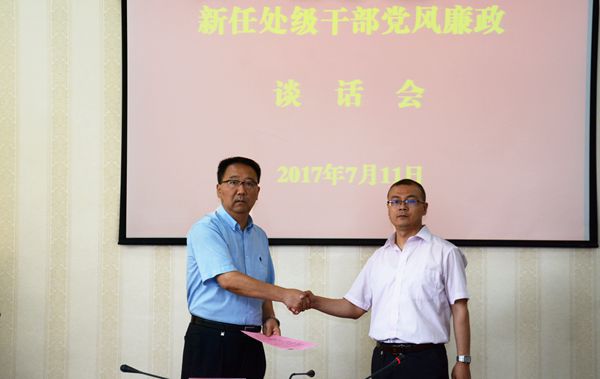 廉政談話會上,新任處級干部簽訂了《廉潔從政承諾書》并逐一遞交到龍治剛手中。