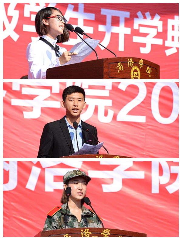 教師代表喬成芳博士,在校學生代表王祥宇,2017級新生代表張海明分別作了熱情洋溢的發言。