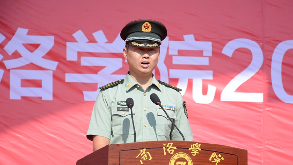 范新會代表全校師生員工對2017級新同學來商洛學院學習深造表示熱烈歡迎,對獲得“新生獎學金”的同學們表示熱烈祝賀,對承擔軍訓任務的全體官兵表示衷心的感謝,并介紹了我校的辦學歷史、辦學定位、辦學理念、辦學特色和未來發展前景。范新會指出,建校以來,我校已為國家培養了4萬余名合格人才,今天的商洛學院已經成為鑲嵌于商洛大地、丹江河畔的一張金色名片,一座為國家源源不斷培養和輸送優秀人才的黌門圣殿,以強有力的人才支持、智力支撐、文化引領和科技服務,持續推動著商洛區域經濟社會和文化發展。