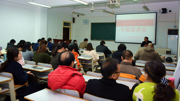 12月5日晚,校黨委委員高榮發到藝術學院宣講黨的十九大精神。宣講會由藝術學院黨總支書記黃新春主持。