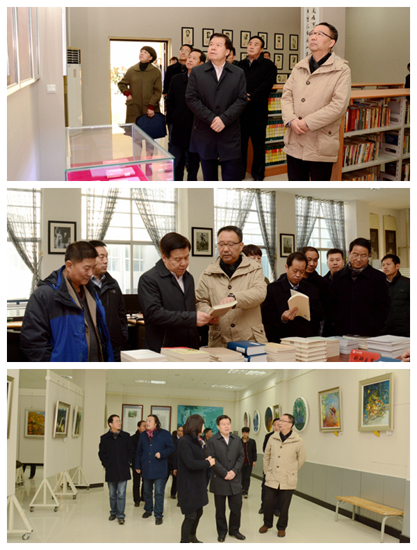 簽字儀式結束后,張崗嶺一行在龍治剛、范新會的陪同下,參觀考察了我校校園環境及特色展廳。