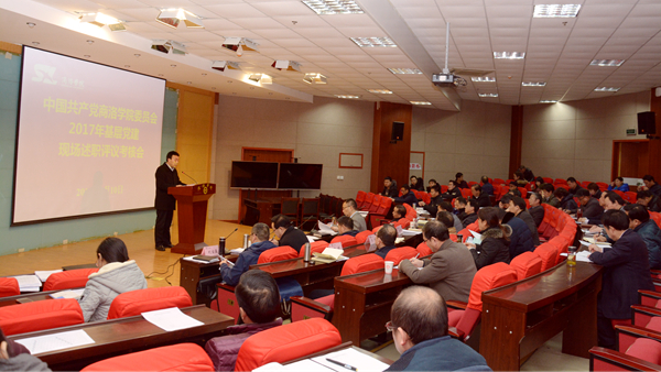 1月10日,校黨委召開2017年度基層黨建現(xiàn)場述職評議考核會議,校領(lǐng)導(dǎo)龍治剛、范新會、王思懷、魏書堂、彭虎軍、劉寶盈出席會議,校黨委委員、黨委部門負(fù)責(zé)人、各黨總支書記、直屬黨支部書記及部分黨員代表參加會議。會議由黨委副書記彭虎軍主持。