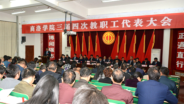 4月11日下午,在雄壯嘹亮的國(guó)歌聲中,商洛學(xué)院三屆四次教職工代表大會(huì)召開。校領(lǐng)導(dǎo)龍治剛、范新會(huì)、王思懷、魏書堂、彭虎軍、劉寶盈,全校146位正式代表、5位列席代表出席大會(huì)。