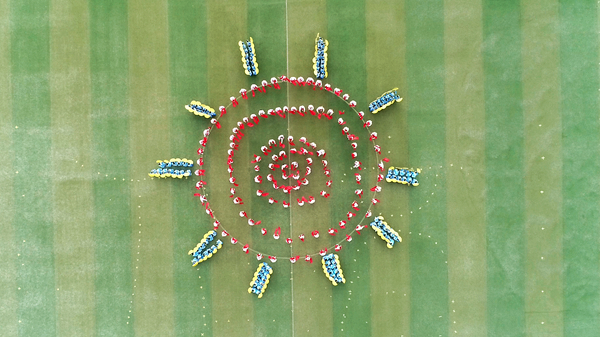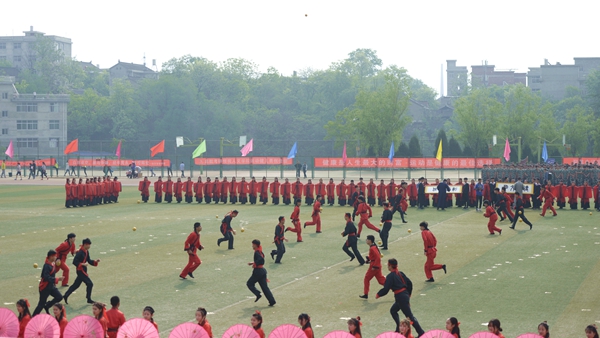 在開幕式文藝表演上,生物學院學子帶來了剛柔并濟的腰鼓舞,明艷的紅綢、鏗鏘的鼓點展示了中國民間藝術的魅力,太陽造型象征著商院的明天如太陽般明亮美好,燦爛輝煌;人文學院進行了大型漢文化表演,婀娜多姿的采薇舞,動感活力的蹴鞠表演以及精彩的現場書法將漢文化展現得淋漓盡致;我校女教職工帶來了第九套廣播體操表演,課堂上她們博學育桃李,運動場上她們充滿朝氣、英姿颯爽,充分展現了崇尚運動、積極進取的巾幗風采;電信學院學子為大家表演了威震四方的軍體拳,出拳虎虎生威、踢腿堅毅有力,喊聲震天、勢如霹靂,彰顯了青年大學生威武不屈的意志和昂揚的斗志;經管學院學子身著彩衣,踩著動感的音符為我們帶來了大型團體操表演,擺出了“SLXY”的造型,如同含苞待放的花朵,象征著我校蓄勢待發的美好愿景,把開幕式氛圍推向了高潮。