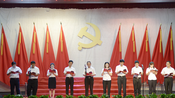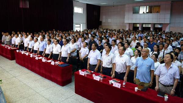 會場氣氛隆重熱烈,黨旗鮮艷高揚,黨徽熠熠閃光,師生精神飽滿。大會伊始,全體起立,高唱國歌。激昂的旋律、洪亮的歌聲響徹會場。