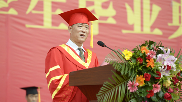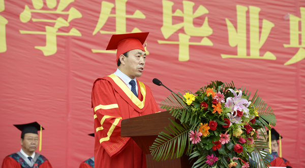 校長范新會以《不忘初心 砥礪奮進 做新時代的奮斗者》為題發表了情真意切的講話。他深情地說,“母校”是一個溫暖而幸福的字眼,是世界上最質樸的一種情結,是最為珍貴的人生記憶。過去的四年,學校事業蓬勃發展,蒸蒸日上。你們與學校共同成長、共同進步,追求理想,砥礪前行,在這里磨礪了意志,增長了才干。你們用奮斗點亮了大學時光,為學校贏得了無數榮譽,你們的拼搏精神和青春故事已經深深地鐫刻在母校的記憶里!在這依依惜別的時刻,母校和老師對你們不舍再見,更為你們感到驕傲!