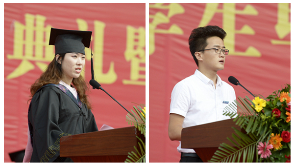 人文學院秘書學專業1401班孟丹代表2018屆畢業生,向學校領導和老師致以最崇高的敬意和最衷心的感謝!他說,我們將帶著母校的希望與囑托,去勇敢面對人生,尋求生命的光榮和夢想。未來的我們會更加勤奮,更加拼搏,未來的商院也必將更加繁榮,更加強大!