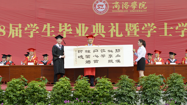 副校長劉勇宣讀了商洛學院2018屆畢業生畢業資格及學士學位授予資格審核結果、優秀畢業生及“奉獻基層 服務邊疆”優秀畢業生表彰決定。思政1402班常文潔等126名同學被授予“優秀畢業生”榮譽稱號,思政1402班王聰等20名同學被評為“奉獻基層 服務邊疆”優秀畢業生。在熱烈的掌聲中,校領導為優秀畢業生代表頒發了證書。