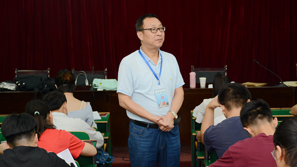 本學期期末考試已于7月2日正式開始, 3日至5日,校領導龍治剛、范新會、王思懷、魏書堂、彭虎軍、劉寶盈、劉勇在教務處負責人的陪同下,分頭深入考場,檢查指導期末考試工作。