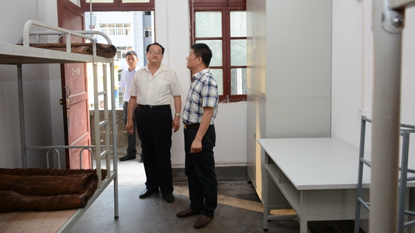 8月31日,校長范新會,副校長魏書堂、劉勇在黨政辦公室、教務處、資產(chǎn)管理處、后勤保障處、信息中心負責人的陪同下深入學生宿舍、新建綜合大樓等場所,檢查開學準備情況。