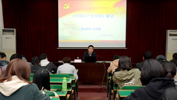 黨委副書記彭虎軍以《中國共產黨章程》解讀為題為學員們作了專題報告。他從黨章的基本定位、黨章的歷史沿革、十九大黨章解讀、怎樣學習黨章四個方面對《中國共產黨章程》進行了深入淺出的講解。
