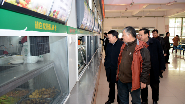 在魏書堂、彭虎軍的陪同下,袁寧一行深入學生食堂等處進行了實地檢查。