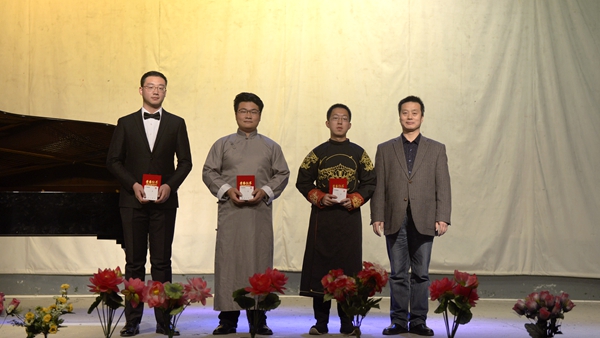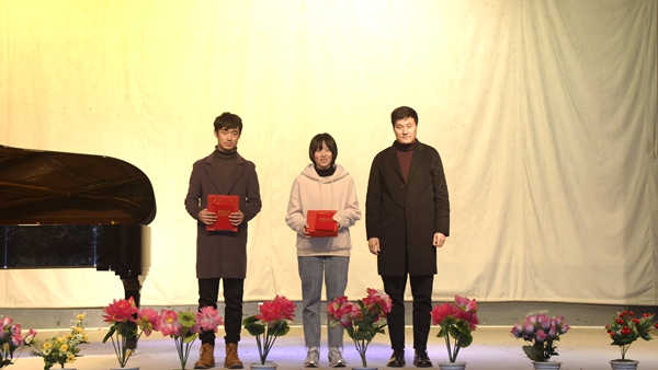 本次藝術活動旨在深入貫徹全國教育大會精神,用多彩的藝術形式引導大學生堅定理想信念,營造良好校園文化氛圍。活動包括好聲音、書畫、誦讀三個比賽環節,其中好聲音、書畫比賽分為專業組和非專業組兩個比賽組別,經過激烈角逐、現場打分和綜合評比,最終好聲音比賽《望月》作品獲得專業組一等獎、《出現又離開》作品獲得非專業組一等獎;書畫比賽《自畫像》作品獲得專業組一等獎、《錦上添花》作品獲得非專業組一等獎;誦讀比賽《祖國頌》作品獲得一等獎,另有10個參賽作品獲得二等獎,15個參賽作品獲得三等獎。參加晚會的相關單位負責人現場分別為獲獎作品頒發了榮譽證書并合影留念。