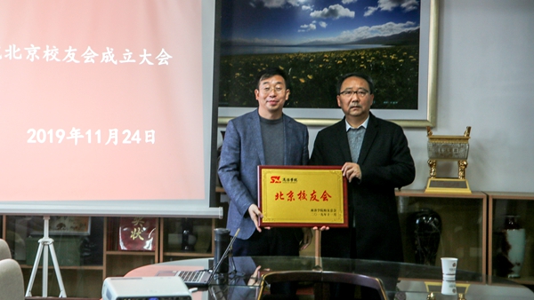 彭虎軍為北京校友會受聘人員頒發了聘書。張向東宣讀了學校關于成立北京校友會的批復和聘任決定。