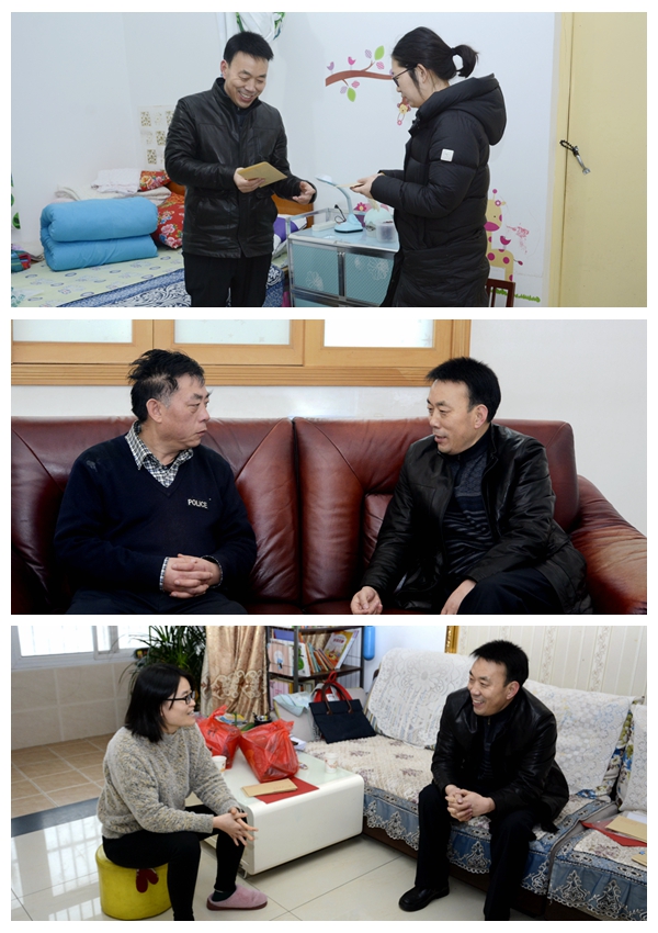 1月14日,黨委副書記彭虎軍在校工會(huì)相關(guān)負(fù)責(zé)人的陪同下,帶著對(duì)聯(lián)、“福”字,專程赴王珍琪、郭建文等3位困難教職工的家中,面對(duì)面和他們拉家常、問冷暖,為他們帶去省工會(huì)和校工會(huì)的慰問信、慰問金,送上學(xué)校的溫暖關(guān)懷和美好祝愿,鼓勵(lì)他們保持樂觀心態(tài)、勇敢面對(duì)生活、紅紅火火過大年。