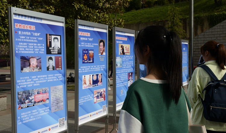 馬克思主義學院學生黑晨怡代表在校學生表態發言。她呼吁全體同學樹立正確的人生觀和價值觀,從我做起、不信邪教、抵制邪教,努力學習科學文化知識,提高辨別真假是非的能力,用科學的力量去抵制邪教的侵害,以實際行動為國家安全及校園穩定貢獻力量。
