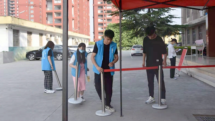 疫苗接種現場,志愿者們秉承“全心全意為同學服務”的宗旨,合理分工、各司其職,有序開展志愿服務工作,協同負責疫苗接種全流程的秩序維護。在接種學生排隊過程中,為緩解排隊壓力,志愿者們及時調整各登記處的排隊人數,在排隊等候區(qū)搭建遮陽帳篷、拉秩序帶,為接種者營造舒適的環(huán)境,并積極配合醫(yī)務人員對前來接種的學生進行引導,耐心解答學生提出的問題,確保疫苗接種工作的有序進行,以實際行動踐行“奉獻、友愛、互助、進步”志愿精神。