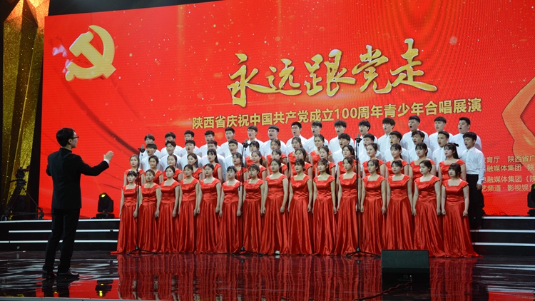 陜西省慶祝中國共產(chǎn)黨成立100周年“永遠跟黨走”青少年合唱展演活動,由陜西省教育廳、陜西省廣播電視局、陜西廣電融媒體集團聯(lián)合主辦,旨在堅持以社會主義核心價值觀為引領(lǐng),堅持根植中華優(yōu)秀傳統(tǒng)文化深厚土壤,堅持以美育人、以美化人、以美培元,引導(dǎo)學(xué)生樹立共產(chǎn)主義遠大理想和中國特色社會主義共同理想,增強學(xué)生的中國特色社會主義道路自信、理論自信、制度自信、文化自信,立志肩負起民族復(fù)興的時代重任,培養(yǎng)德智體美勞全面發(fā)展的社會主義建設(shè)者和接班人,以優(yōu)異成績向中國共產(chǎn)黨成立100周年獻禮。活動共收到全省120余所大、中、小學(xué)推薦報送的參演作品,其中高等學(xué)校約60所,11所高校獲得了陜西廣播電視臺現(xiàn)場錄制及展演,并將在陜西廣電融媒體集團(陜西廣播電視臺)公共文藝頻道進行播出。