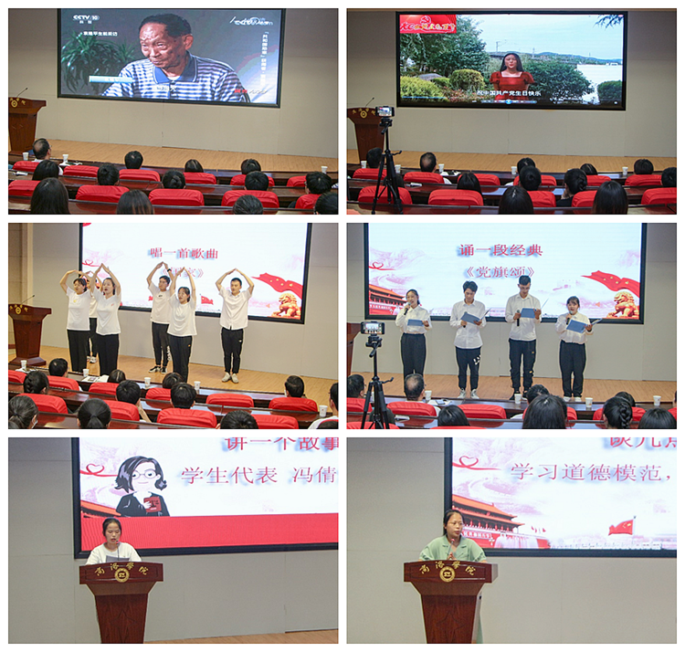 此次道德講堂分唱歌曲、看短片、講故事、談感悟、誦經典、獻祝福6個環節。活動中,學生表演了手語舞《國家》,歌頌偉大的祖國。集體觀看了短片《“共和國勛章”獲得者:袁隆平》,重溫了袁隆平院士用一生的時間造福國民乃至全人類的光輝事跡,深刻感悟袁隆平院士勇攀高峰的科學精神、腳踏實地的追夢精神及淡泊名利的奉獻精神。朗誦了紅色詩歌《黨旗誦》,激勵全體青年學子勇擔使命,堅定初心、守護初心、永葆初心,在不懈奮斗中綻放青春。該院學生還錄制了祝福視頻《獻禮建黨100周年》,用一句句祝福語道出了濃厚的愛黨愛國之情。期間,2021年第一季度“商洛好人”、數計學院學生馮倩向大家講述了自己少年時期的坎坷經歷,分享了自己在面對困難與挫折時,用持之以恒的努力和真誠無私的愛堅持對真善美的不懈追求的感悟。