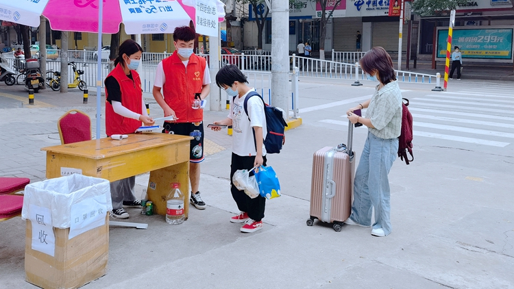 校團委在北新街校區設立集中隔離點,將兩校區返校志愿者進行統一管理和隔離,并于8月16日組織全體返校志愿者進行核酸檢測,確保志愿者隔離期間的健康安全。隔離期間,校團委全力以赴為志愿者們解決住宿生活中的實際問題。校青年志愿者協會積極協助團委做好志愿者返校各項工作,分別在校門口和大學生活動中心進行值班,為返校志愿者進行行李消毒、測溫及信息登記,并提前布置核酸檢測場地,按照安排組織大家有序進行核酸檢測,以實際行動展示了“奉獻、友愛、互助、進步”的志愿服務精神。