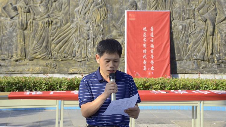 為貫徹落實全國語言文字會議精神,傳承弘揚以語言文字為載體的中華優(yōu)秀文化,進(jìn)一步增強我校師生學(xué)習(xí)國家通用語言文字意識,9月13日下午,人文學(xué)院舉辦了“普通話誦百年偉業(yè),規(guī)范字寫時代新篇”第24屆普通話推廣宣傳周活動啟動儀式。人文學(xué)院院長張文諾作動員講話,教務(wù)處副處長高擴昌宣布“推普周”活動正式啟動。