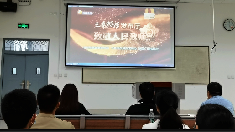 師生們集體觀看了由陜西省委宣傳部、省委文明辦、陜西廣播電視臺聯合錄制播出的教師節特別節目《三秦楷模發布廳——致敬人民教師》,學習了全國教書育人楷模丁海燕、中國好人馬維帥、陜西省優秀共產黨員趙瑜等陜西三位優秀教師代表扎根三秦大地賡續百年初心、擔當育人使命的感人事跡,汲取他們身上的高尚品格、奉獻精神和奮斗力量。
