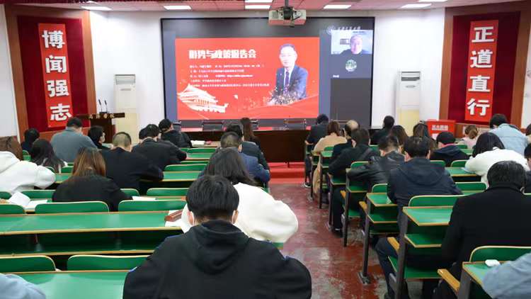 為深入貫徹落實黨的十九屆六中全會精神并將全會精神準確融入思政課,3月29日下午,陜西省委教育工委舉辦形勢與政策高端視頻報告會,邀請中國人民大學馬克思主義學院二級教授、博士生導師劉建軍,為全省高校師生作題為“十九屆六中全會精神融入思政課的幾個問題”的專題報告。我校組織部、宣傳部、統戰部、學工部、馬克思主義學院相關負責人,全體思政課教師、輔導員和馬克思主義學院學生代表通過在線直播集中聽取報告。