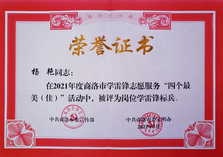 我校教師楊艷榮獲2021年度商洛市崗位學雷鋒標兵榮譽稱號