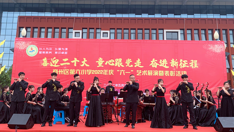 5月27日和31日,我校附屬小學和幼兒園分別舉辦了“喜迎二十大、共育花成長”和“喜迎二十大、童心跟黨走、奮進新征程”主題藝術展演活動。副校長王新軍和學校發展規劃處、藝術學院負責人出席活動。藝術學院民族管弦樂團為附屬小學師生表演了《象王行》《權御天下》《揚鞭催馬運糧忙》等民樂節目,共同歡慶孩子們的節日。