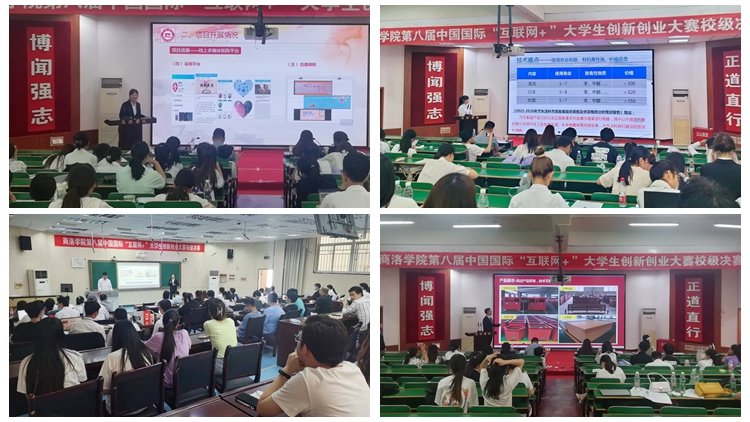 本次大賽經過網絡報名、二級學院選拔、校級初賽、校級復賽和校級決賽5個階段,校級決賽分項目團隊代表現場路演展示、評委質詢答辯2個部分,設兩個分會場。各項目團隊分別從行業背景、市場分析、目標客戶、產品服務、商業模式、核心技術、營銷策略、團隊成員、項目優勢、財務分析、融資計劃、風險控制、樣品展示等方面全方位展示了項目內容。評委從項目的創新點、可行性、商業模式、賽道組別、材料完整性、科技轉化、成果落地等方面提出了指導性意見。