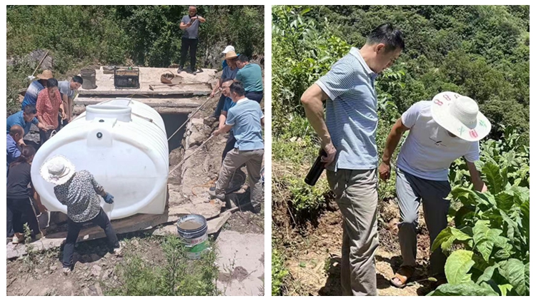 劉勇首先查看了我校援建的蓄水池改造工程,該工程建成后可滿足11戶60余人飲水及煙田灌溉,切實解決原飲水設施年久失修、雨期雨水倒灌、蓄水池漏水、水質污染等問題。