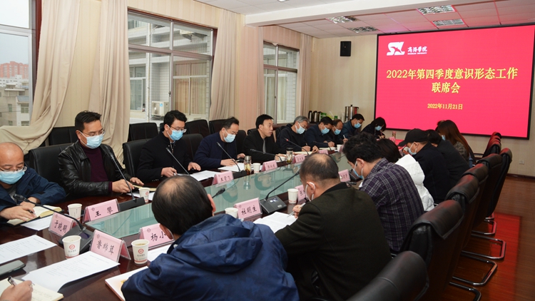 11月21日下午,黨委副書記彭虎軍主持召開2022年第四季度意識形態工作聯席會,總結2022年意識形態工作情況,分析、研判近期意識形態工作形勢,部署下一階段重點工作。意識形態工作聯席會議各成員單位負責人參加會議。