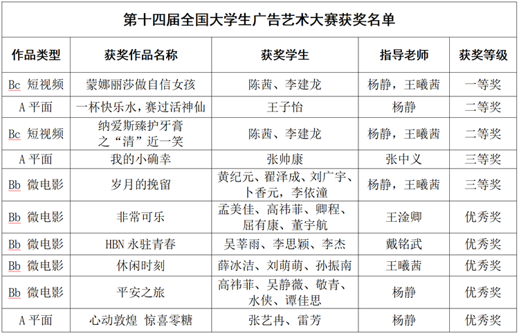 我校學子在第14屆全國大學生廣告藝術大賽中榮獲佳績