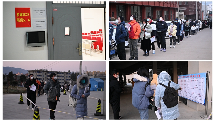 因疫情防控政策調整,加之研考當日商洛市發(fā)出降雪預警,給本年度研考工作帶來了更大挑戰(zhàn)。考試工作領導小組和相關職能部門靈活應對,及時調整方案,加強考務力量。組織部、教工部面向全校發(fā)出號召,抽調教職工志愿者280名。教務處考前反復進行排查,分類制定考場安排,從校門口到考場全程設置沿途指示牌和引導員,對特殊考生全程提供一對一服務。為保障丹江校區(qū)考生在考試期間保持充足精力,學校安排大巴車閉環(huán)接送,并在北新街校區(qū)設置專屬休息區(qū)和自習室,幫助考生洗去“趕考”的疲憊。后勤保障處為考生提供全程醫(yī)療保障和午餐簡餐,在為每個考點設置多個熱水直飲水供應點,定時做好區(qū)域保潔消殺工作,營造溫暖舒適的候考環(huán)境。保衛(wèi)處、信息化建設與管理處工作人員提前到崗,規(guī)范入場秩序,提供咨詢引導等溫情服務。全體考務工作人員頂著疫情和風雪堅守每一道防線,為廣大考生保駕護航,確保實現(xiàn)“平安研考”的工作目標。