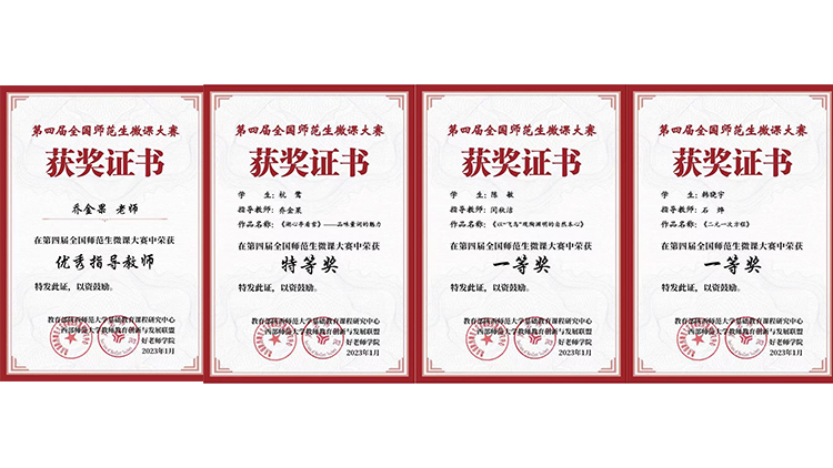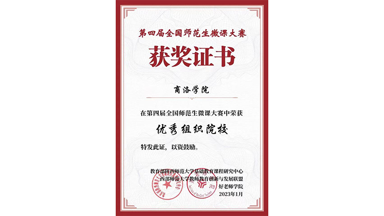 近日,第四屆全國師范生微課大賽結果公布。我校師生獲得各類獎項13項,其中學生榮獲特等獎1項、一等獎2項、二等獎8項,人文學院喬金果老師榮獲優秀指導教師,學校榮獲優秀組織單位獎。這是我校參與此項賽事以來首次榮獲優秀組織獎,實現了學校集體獎、學生獲獎等級和獲獎總數多項突破。