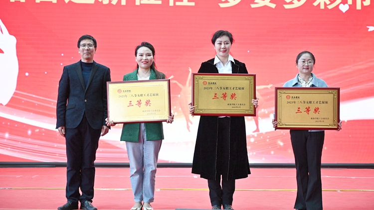 為慶祝“三八”婦女節,營造健康向上的校園文化氛圍,3月8日下午,校工會以“團結奮進新征程 多姿多彩巾幗秀”為主題,組織舉辦了 “三八”婦女節女教職工才藝展演活動。活動在丹江校區舉行,來自工會各分會的女教工們表演了歌曲、舞蹈、朗誦、健美操、戲曲聯唱等18個文藝節目。校黨委副書記、工會主席彭虎軍,工會副主席魚小強出席活動并為獲獎節目頒獎。工會各分會主席、校工會全體工作人員和廣大女教職工歡聚一堂,共同欣賞舞臺上別樣的巾幗風采。