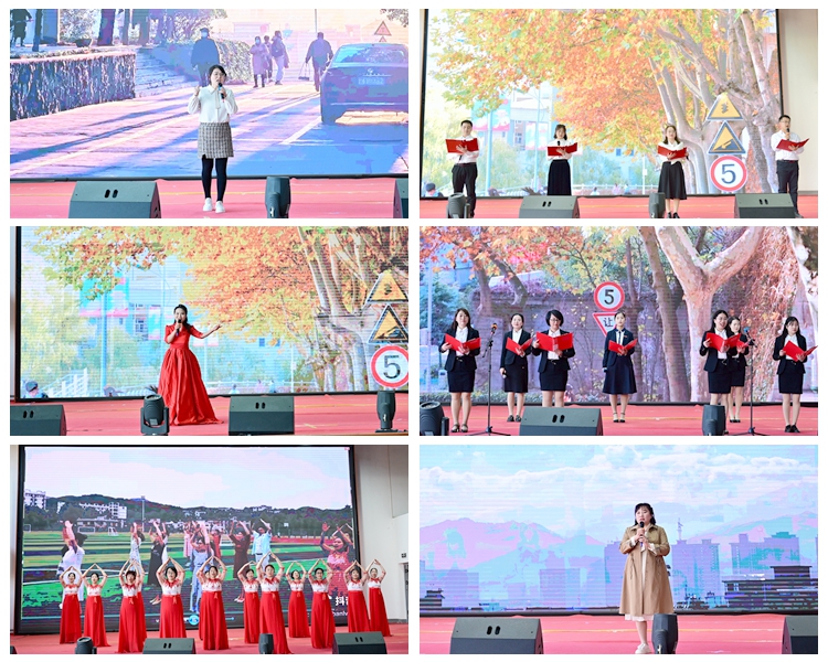 活動在建工學院分會曹蕾高亢的歌聲中拉開帷幕。歌曲《陽光大道》《節日歡歌》《往事》《早安隆回》依次登臺,飽含深情的詩歌朗誦《巾幗英豪》《女性的光芒》《讀中國》為觀眾講述了一段段深情的故事,健美操、爵士舞、手語舞、旗袍秀、秦腔串燒等節目贏得了場下觀眾陣陣熱烈的掌聲。精彩紛呈的才藝表演展現出我校女教職工熱愛祖國、堅守初心、自立自強、優雅知性的精神面貌。
