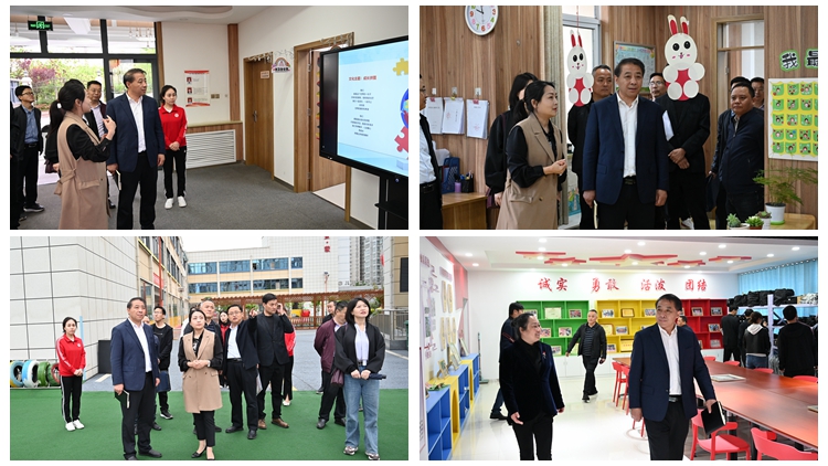 會前,王新軍與我校相關部門負責人、附屬學校班子成員一同參觀了2022年度合作共建的項目成果。