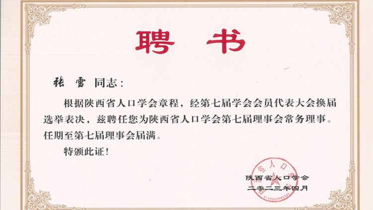 會議選舉產(chǎn)生了學(xué)會黨支部書記和支部委員,審議通過了學(xué)會第六屆理事會工作報告和財務(wù)審計報告,通過了《陜西省人口學(xué)會章程(草案)》,選舉產(chǎn)生了省人口學(xué)會第七屆理事會理事、常務(wù)理事、副會長、會長、秘書長。張雪當(dāng)選陜西省人口學(xué)會第七屆理事會理事及常務(wù)理事。