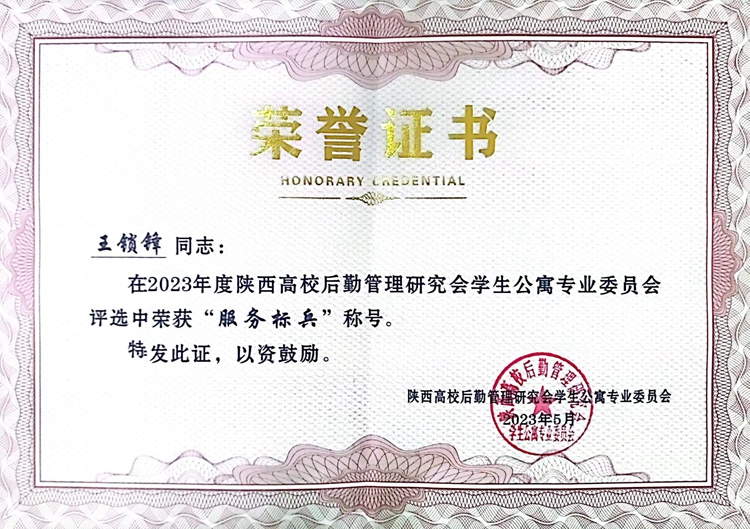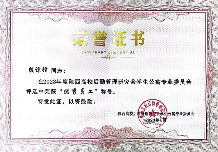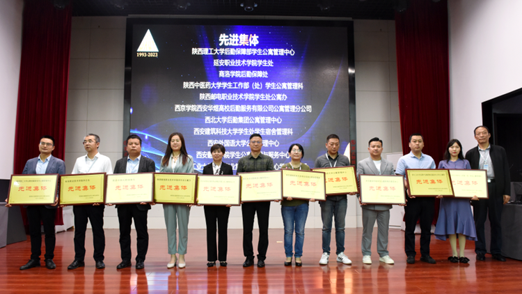 會上,陜西高校學生公寓專業委員會秘書長賈亞新宣讀了《2023年度陜西高校學生公寓先進集體、服務標兵、優秀員工》的表彰決定。我校后勤保障處獲得“陜西高校學生公寓先進集體”榮譽稱號,后勤保障處副處長殷譚鋒被評為陜西高校學生公寓“優秀員工”,后勤保障處職工王鎖鋒被評為陜西高校學生公寓“服務標兵”。后勤保障處處長李彥廣作為嘉賓之一為優秀員工代表頒發獎狀。