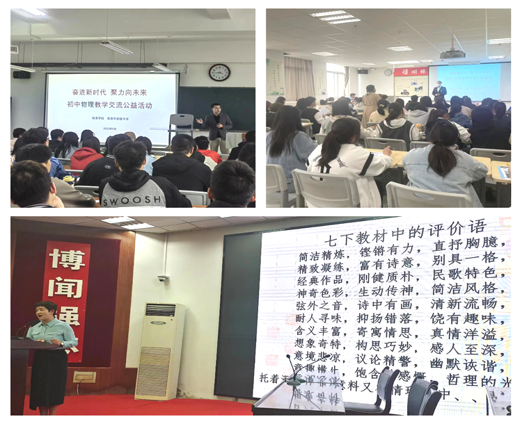 為創(chuàng)新教師專(zhuān)業(yè)成長(zhǎng)新模式,充分發(fā)揮區(qū)域初中名優(yōu)骨干教師的示范引領(lǐng)作用,有效促進(jìn)高校與基礎(chǔ)教育優(yōu)質(zhì)資源的有機(jī)融合,提升師范生教育教學(xué)實(shí)踐能力水平,近日,我校與商洛市初級(jí)中學(xué)聯(lián)合舉辦多學(xué)科教學(xué)交流公益活動(dòng),邀請(qǐng)商洛市初級(jí)中學(xué)省市級(jí)三級(jí)三類(lèi)骨干教師團(tuán)隊(duì),分別深入馬克思主義學(xué)院、人文學(xué)院、數(shù)學(xué)與計(jì)算機(jī)應(yīng)用學(xué)院、電子信息與電氣工程學(xué)院等7個(gè)二級(jí)學(xué)院開(kāi)展了20余場(chǎng)學(xué)科示范課、學(xué)科專(zhuān)題報(bào)告等活動(dòng)。